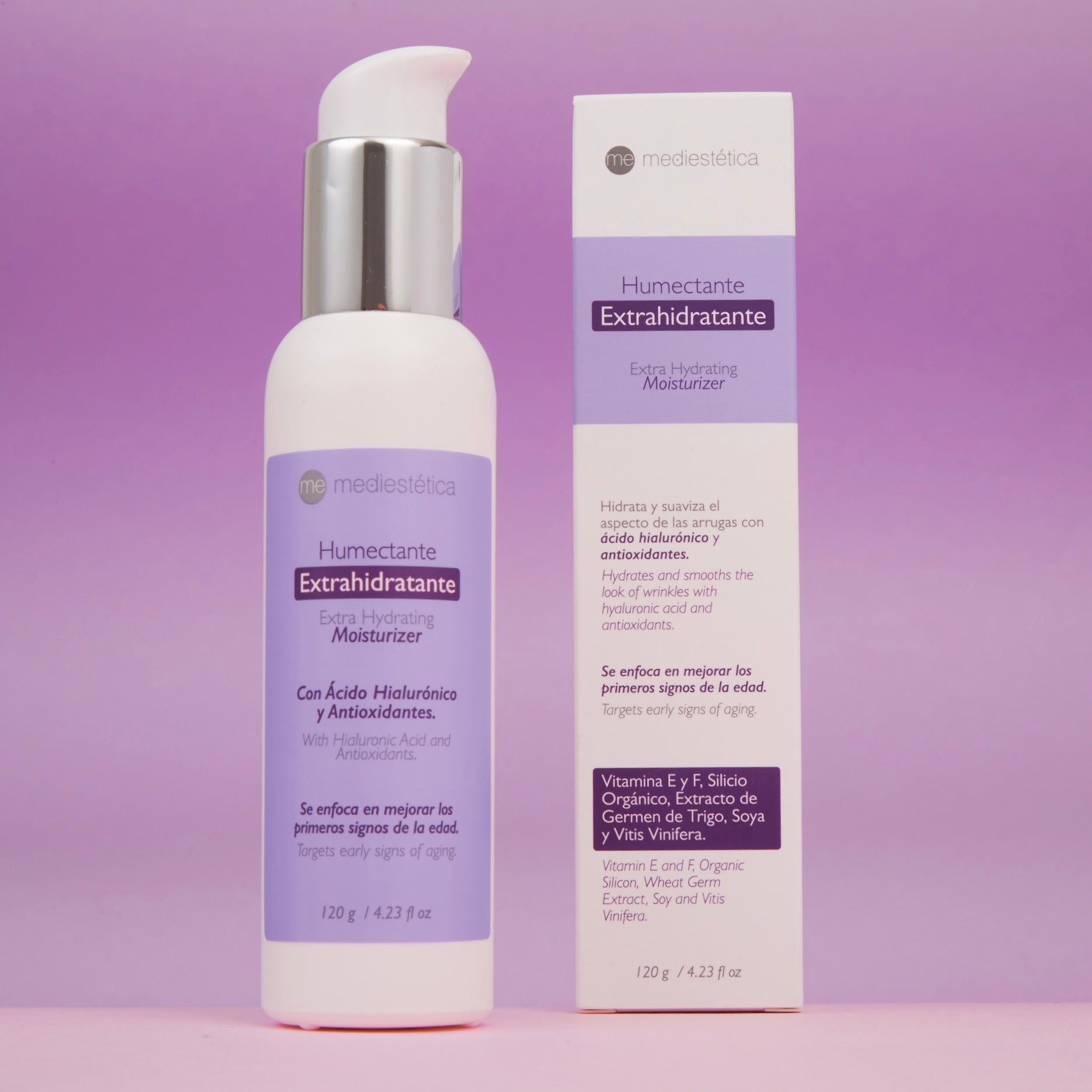 Principios Activos: Ácido hialurónico, Vitamina E, Ácido Linoleico, Extractor de Vitis Vinifera y Soya.